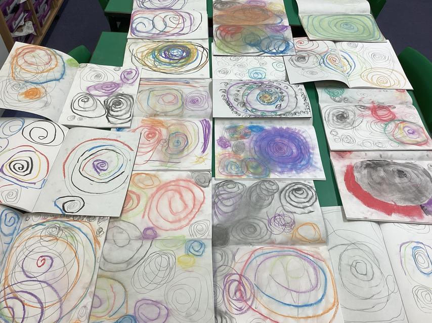 In the Wombats this week we have been creating a spiral art project from a variety of mediums. This is some of the fantastic work that the class have been producing.