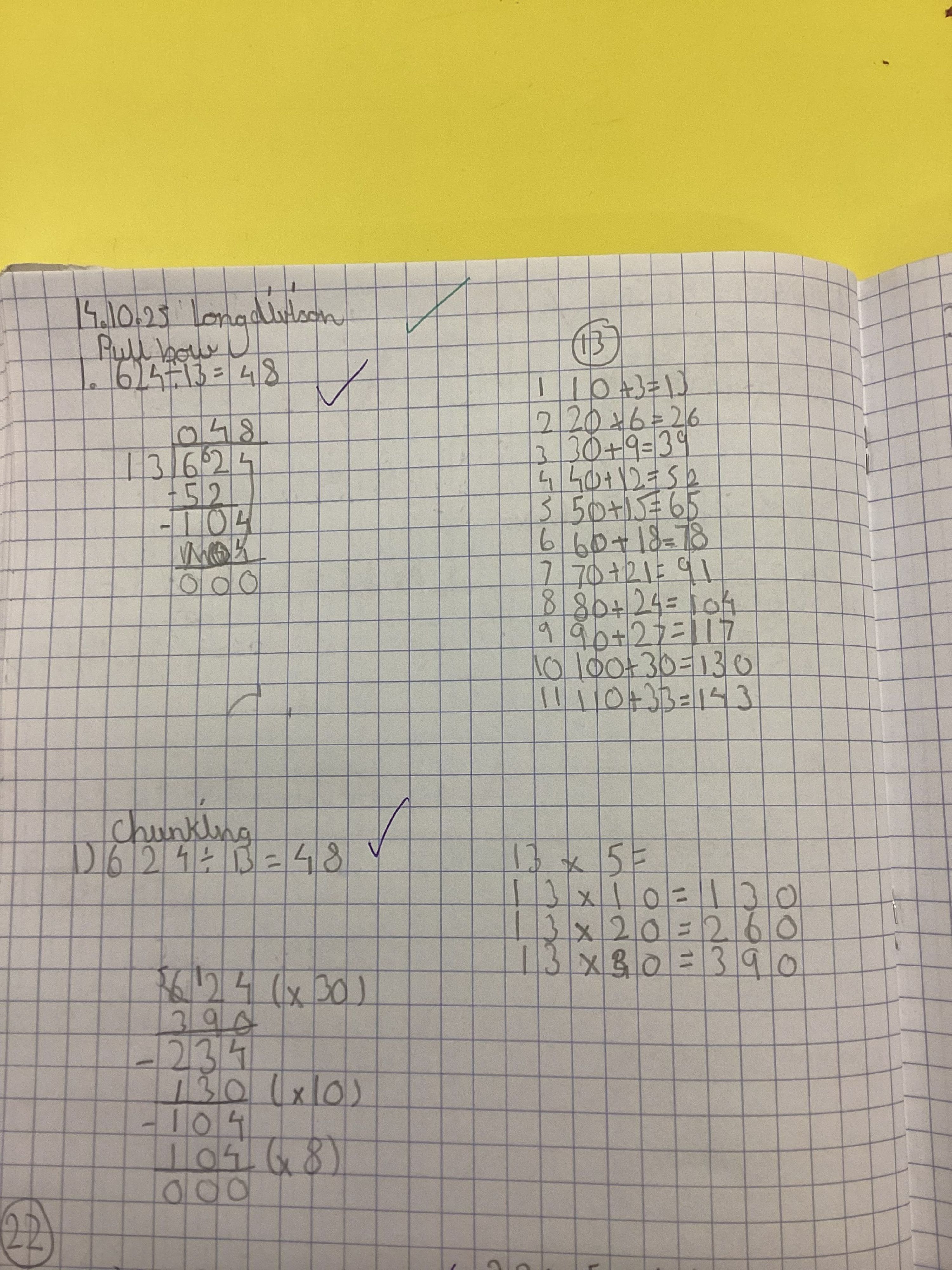 In the Chameleons class this week, in maths we have been demonstaring two different methods of long division. Here is an example below by Franck.
