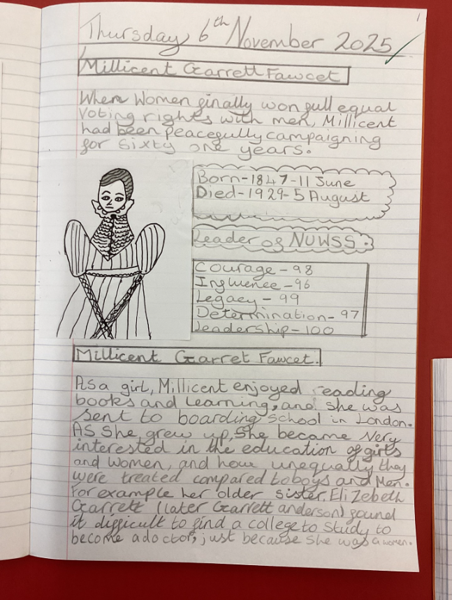 Ava J.created a wonderful pen profile based on a suffragette she had researched.