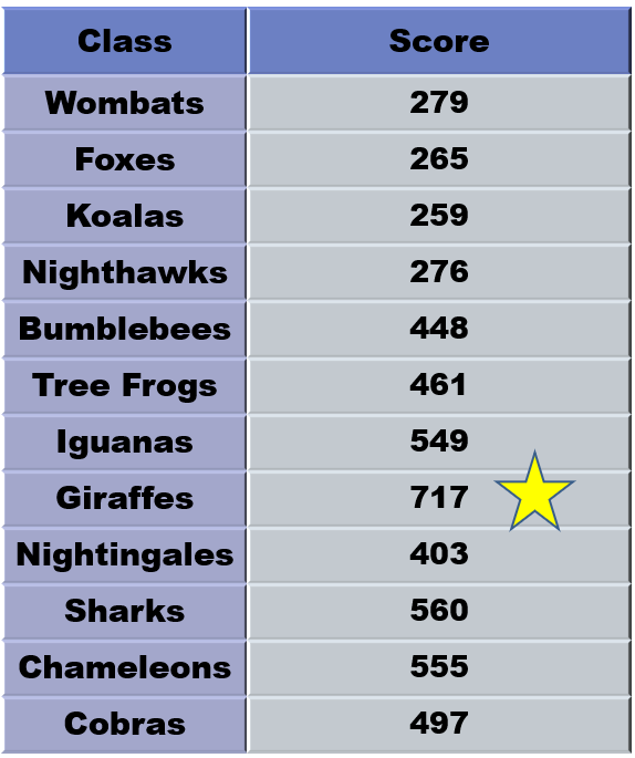 Gordon the Good Attendance Gorilla was most impressed by the following class which had the highest attendance of 99.29%