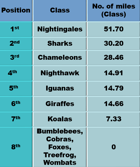 Gordon the Good Attendance Gorilla was most impressed by the following class which had the highest attendance of 100%