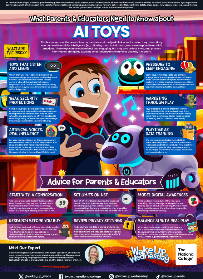 This week we are sharing an online safety poster with a useful guide for parents regarding AI toys and the risks to consider.