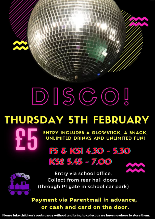 Don't forget next week is the School Disco, a highly anticipated date in the diary for the children!